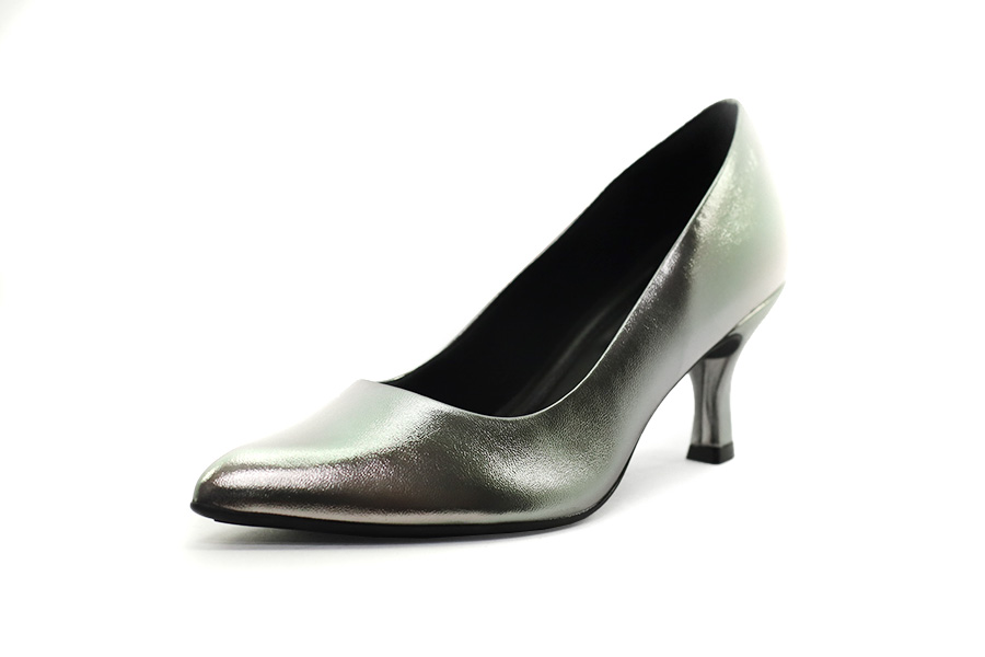 Dámské lodičky Piccadilly v metalickém cínovém odstínu s jemnými zeleno fialovými odlesky, šíře G, na stabilním podpatku vysokém 7 cm pro elegantní a pohodlné nošení.
