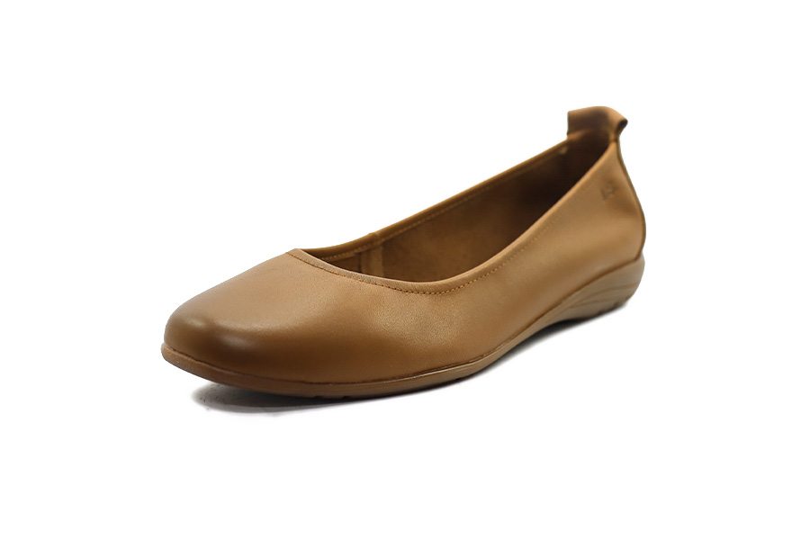 Hnědé kožené baleríny v odstínu camel v šíři G s měkkým svrškem z hladké kůže a nízkým klínkem 1,5 cm pro pohodlné každodenní nošení.