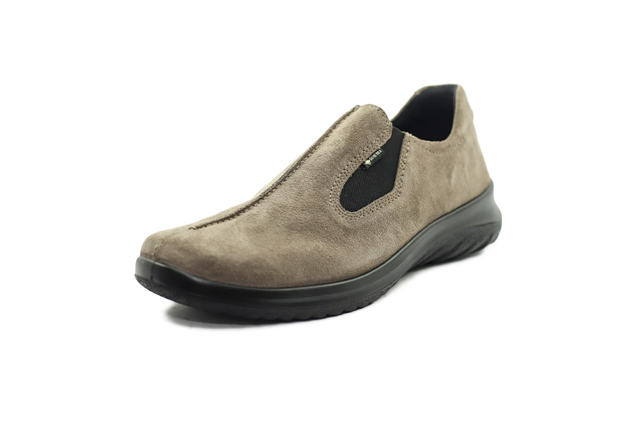 Béžové vycházkové polobotky z velurové kůže s membránou GORE-TEX®, koženou comfort stélkou a provedením v šíři G pro pohodlné nošení i na širší nohu.