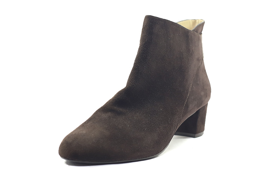 Hnědá kotníková obuv z nubuku s koženou nezateplenou podšívkou a stabilním 4,5cm podpatkem pro elegantní vycházkové nošení.