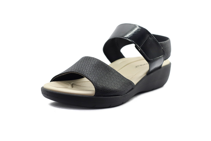 Tmavě hnědé dámské sandály Medi Line z lehkého syntetického materiálu s koženou anatomickou stélkou, dvěma nastavitelnými pásky na suchý zip a pohodlnou podešví s tlumením nárazů.