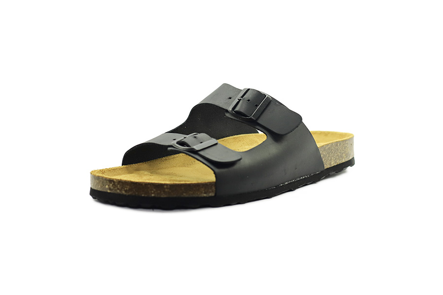 Černé pánské pantofle Lico z hladké kůže s nastavitelnými přezkami, anatomicky tvarovanou stélkou a lehkou EVA podešví pro pohodlné letní nošení.