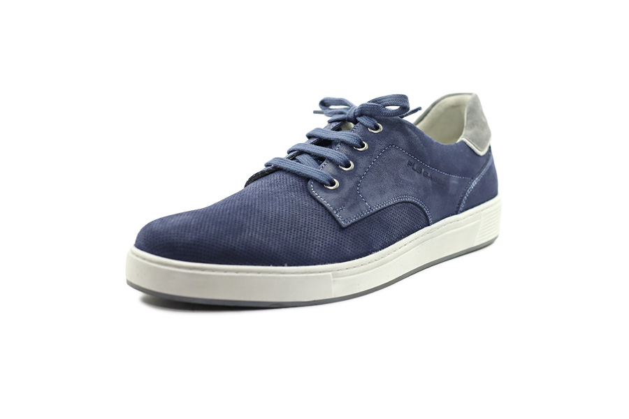Pánské vycházkové polobotky Jomos v tmavě modré barvě, šíře H, kombinují broušenou a hladkou kůži s měkkou vyjímatelnou stélkou Air Comfort pro maximální pohodlí.