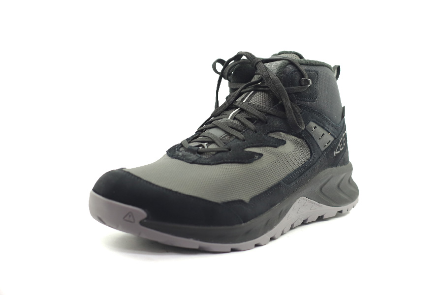 Pánská zimní kotníková obuv De-Plus v olivovo-černé barvě, šíře G, kombinuje hladkou a maštěnou kůži, lehké zateplení a syntetickou podešev s hrubým vzorkem pro komfort a stabilitu.