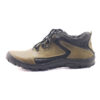 Pánská zimní kotníková obuv De-Plus v olivovo-černé barvě, šíře G, kombinuje hladkou a maštěnou kůži, lehké zateplení a syntetickou podešev s hrubým vzorkem pro komfort a stabilitu.