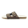 Tyto hnědé pantofle se dvěma nastavitelnými pásky představují praktickou a pohodlnou volbu pro každodenní využití. Díky jednoduchému designu a neutrální barvě se hodí do různých pracovních i domácích prostředí. Svršek je vyroben z kvalitní kůže, která je odolná a zároveň se přirozeně přizpůsobí tvaru chodidla. Dva pásky s kovovými přezkami umožňují individuální nastavení podle potřeby a zajišťují stabilitu při chůzi. Kožená stélka přispívá k příjemnému došlapu a podporuje komfort i při delším nošení. Lehká podešev poskytuje jistotu kroku na různých typech povrchů a zároveň zajišťuje snadnou údržbu obuvi.