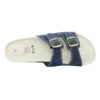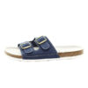 Tyto modré pantofle se dvěma nastavitelnými pásky představují praktickou a pohodlnou volbu pro každodenní využití. Díky jednoduchému designu a neutrální barvě se hodí do různých pracovních i domácích prostředí. Svršek je vyroben z kvalitní kůže, která je odolná a zároveň se přirozeně přizpůsobí tvaru chodidla. Dva pásky s kovovými přezkami umožňují individuální nastavení podle potřeby a zajišťují stabilitu při chůzi. Kožená stélka přispívá k příjemnému došlapu a podporuje komfort i při delším nošení. Lehká podešev poskytuje jistotu kroku na různých typech povrchů a zároveň zajišťuje snadnou údržbu obuvi.