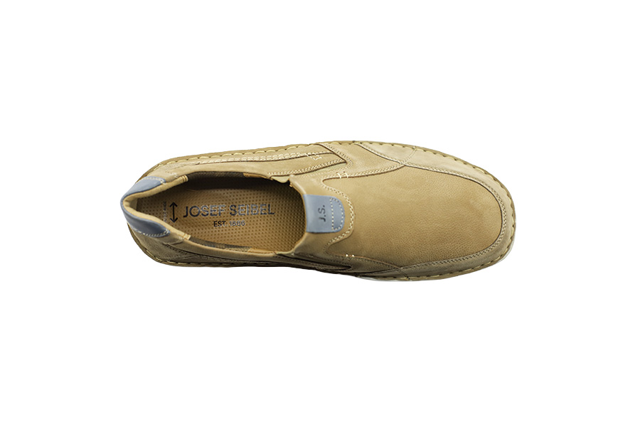 Pánské mokasíny Josef Seibel, šíře K, jsou vyrobeny z vysoce kvalitní nubukové kůže v béžové barvě. Mokasíny mají koženou a textilní podšívku, vyměkčenou vyjímatelnou stélku Arneplant pro dlouhotrvající pohodlí a tlumení nárazů. Díky elastickému materiálu u nártu se snadno obouvají a lehká, ručně přišívaná PU podešev zajišťuje flexibilitu a pohodlí při každodenním nošení.