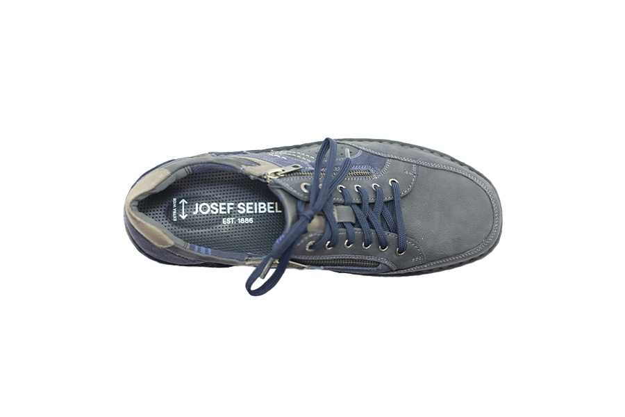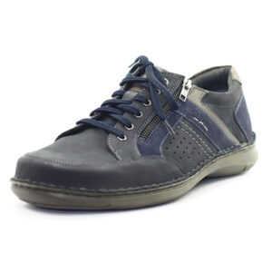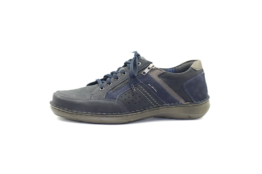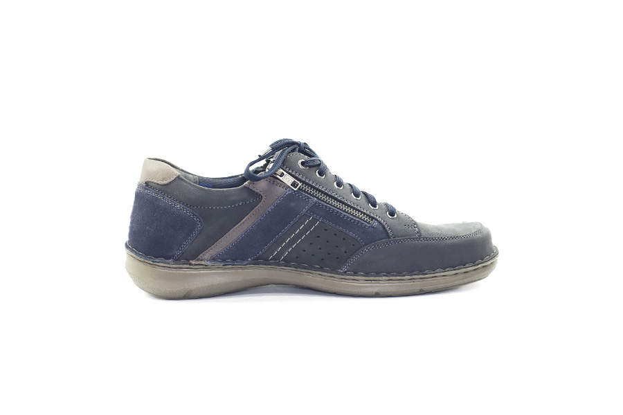 Pánské polobotky Josef Seibel v modré barvě, šíře K, z broušené kůže, s dvojitým zipem pro snadné obouvání, vyjímatelnou antibakteriální vložkou Arneplant a flexibilní přišívanou podešví pro maximální pohodlí při chůzi.