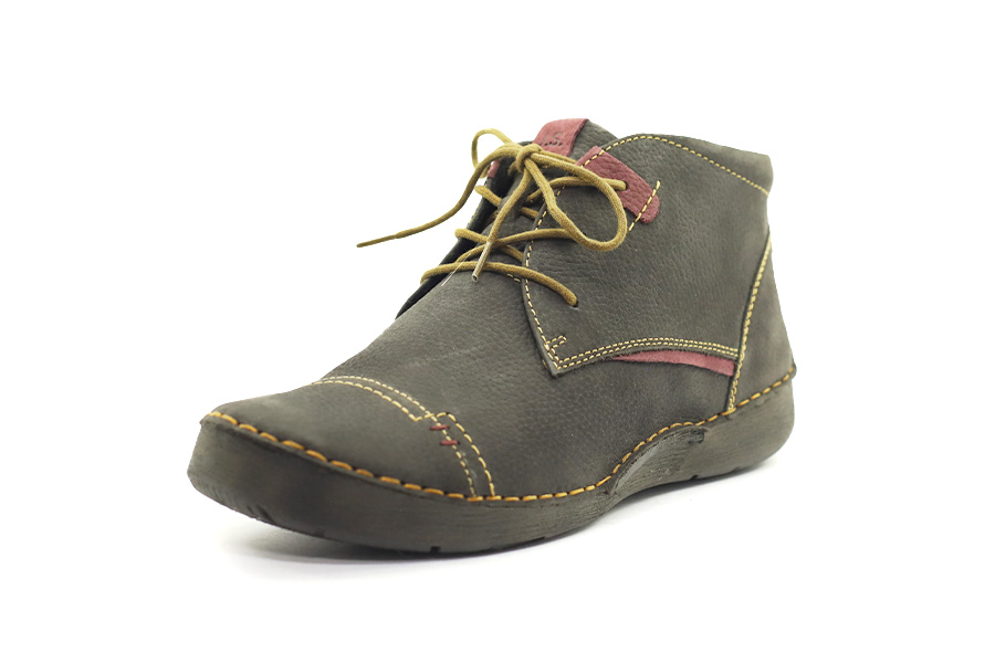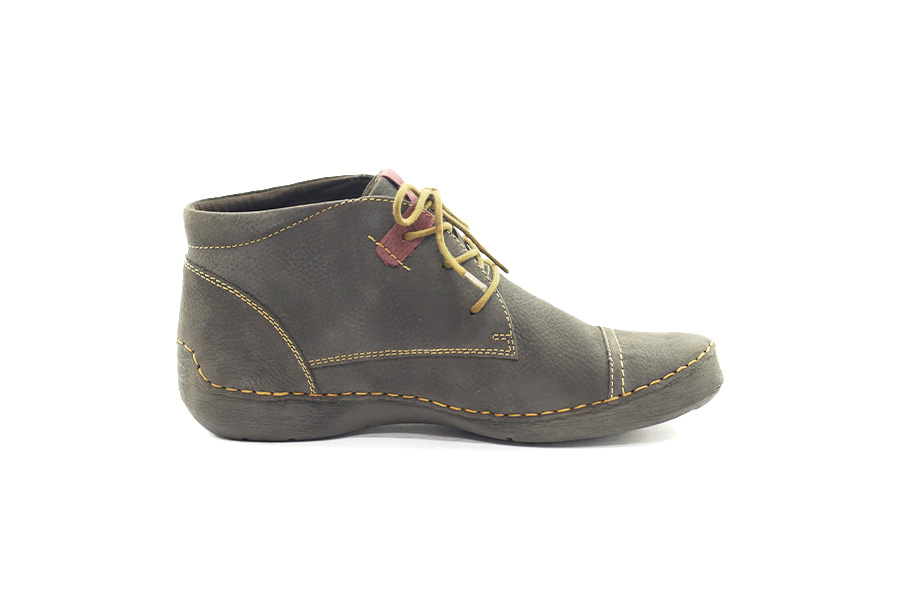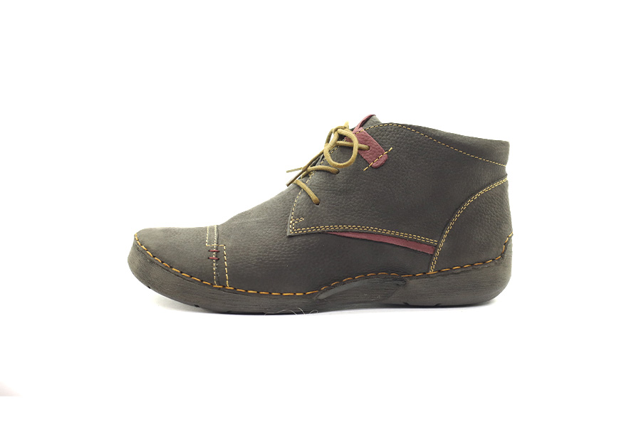 Stylová kotníková obuv značky Josef Seibel z broušené kůže zaujme svým robustním šitím a barevnými detaily, které dodávají botě osobitý charakter. Vnitřní podšívka z kombinace kůže a textilu bez zateplení zajišťuje příjemné klima uvnitř obuvi. Vyjímatelná kožená stélka přispívá k celodennímu komfortu a umožňuje použití individuálních ortopedických vložek. Díky šněrování si můžete obuv dokonale přizpůsobit svému chodidlu. Tento model v šíři G představuje ideální volbu pro každodenní nošení na jaře a na podzim.