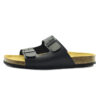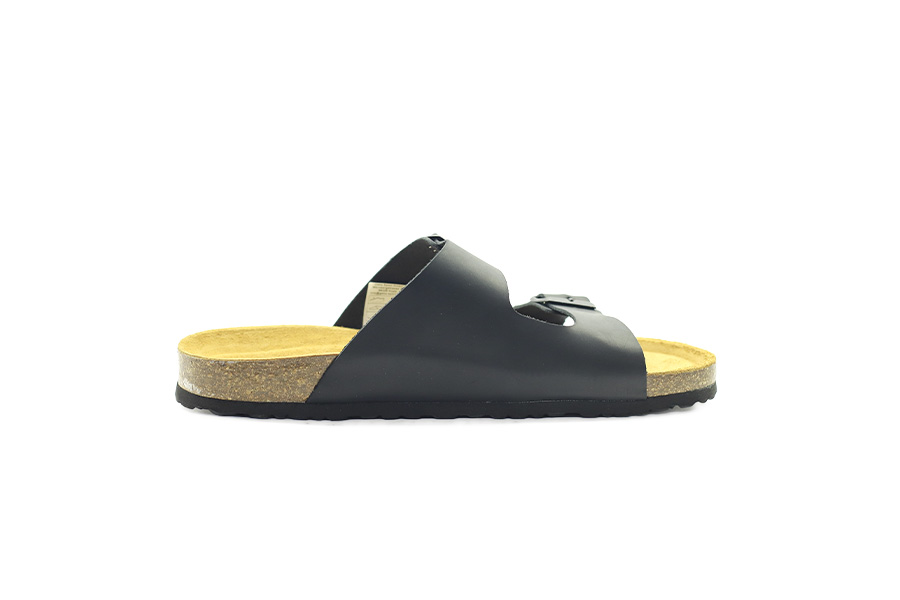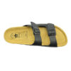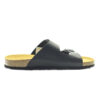 Pánské pantofle Lico v černém provedení představují ideální kombinaci jednoduchého designu, kvalitního zpracování a pohodlí. Svršek je vyroben z hladké kůže, která působí nadčasově a snadno se kombinuje s ležérním i domácím outfitem. Dva široké pásky přes nárt jsou opatřeny kovovými přezkami, díky nimž lze obuv individuálně přizpůsobit tvaru chodidla.