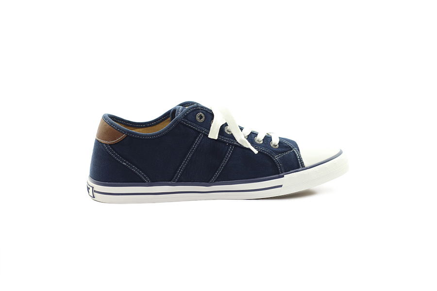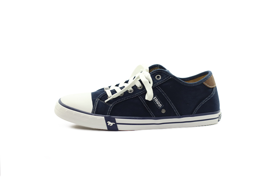 Pánské plátěné tenisky Mustang v tmavě modré barvě, šíře G, zaujmou výrazným designem a sportovně-ležérním stylem. Textilní svršek, podšívka i stélka zajišťují lehkost a prodyšnost. Obuv je vhodná pro příležitostné nošení jako stylový doplněk městského outfitu.