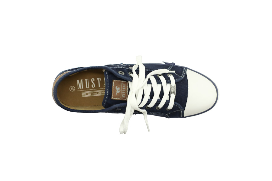 Stylové pánské tenisky Mustang v tmavě modré barvě, šíře G, s lehkým textilním svrškem ideální pro volnočasové nošení.