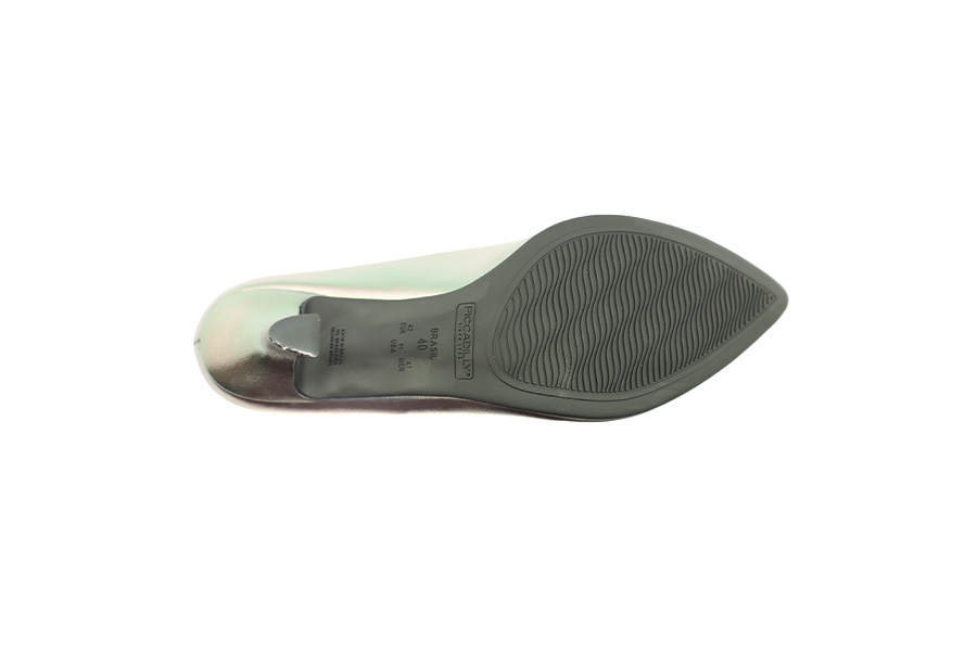 Dámské lodičky značky Piccadilly zaujmou elegantním střihem s jemně špičatou špičkou a sofistikovanou metalickou barvou. Odstín není čistě stříbrný, ale má jemné zelené a fialové odlesky připomínající paví pero, díky čemuž působí velmi luxusně a originálně.