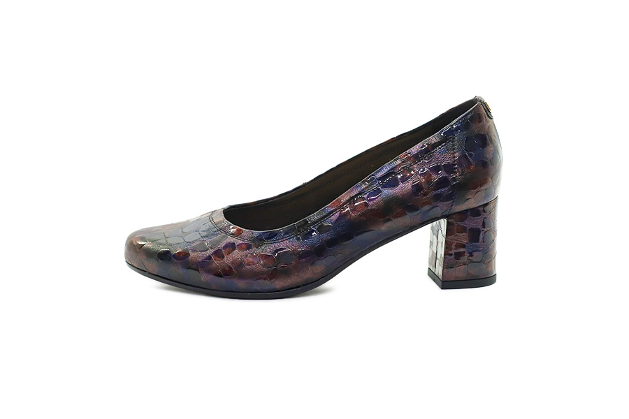 Prémiové dámské lodičky Pulso zaujmou na první pohled originálním kroko vzorem v multikolor provedení, které je doplněné jemně lesklou lakovanou úpravou. Díky tomu působí obuv elegantně, výrazně a zároveň nadčasově, takže skvěle doplní jednoduché šaty, kostým i kalhotový outfit, když chcete dodat celému vzhledu zajímavý detail.