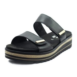 Černé kožené nazouváky v šíři H s nastavitelnými pásky na suchý zip, vyjímatelnou stélkou a lehkou platformou Lite’n Soft pro maximální letní pohodlí