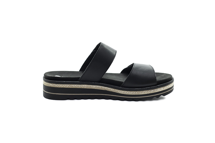 Tyto dámské černé nazouváky představují elegantní a zároveň velmi pohodlnou volbu pro teplé letní dny. Kožený svršek v univerzální černé barvě doplňují decentní zlaté aplikace na řemíncích, které modelu dodávají jemný a vkusný akcent.