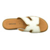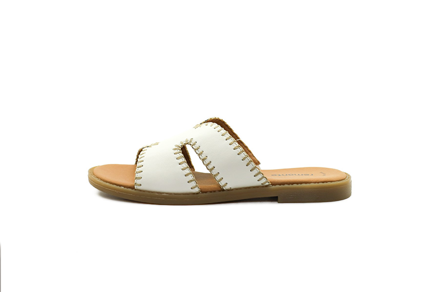 Tyto dámské pantofle v elegantní bílé barvě jsou skvělou volbou pro ženy, které chtějí lehkou letní obuv s vkusným detailem a pohodlným došlapem. Kožený svršek působí čistě a nadčasově, přičemž výrazné dekorativní prošívání po obvodu dodává modelu šmrnc a jemně zvýrazní celkový vzhled. Otevřený střih je ideální do teplých dnů, protože nechává chodidlo přirozeně dýchat a zároveň se obuv snadno nazouvá.