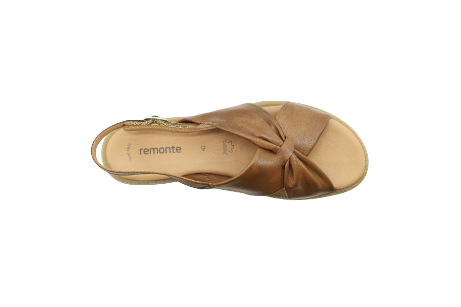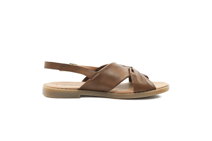 Dámské sandály Remonte v hnědébarvě, šíře G, z hladké kůže zaujmou elegantním páskovým designem, který působí moderně a nadčasově. Zadní pásek se suchým zipem umožňuje snadné obouvání i přizpůsobení šířky podle potřeby. Měkká kožená stélka zaručuje pohodlí při každém kroku a nízký 2cm podpatek poskytuje stabilitu. Stylová a pohodlná obuv ideální do města, do práce i na volný čas.