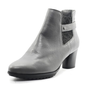 Elegantní kotníková obuv v šedém odstínu z kvalitní kůže zaujme svým čistým a nadčasovým designem. Jemně strukturovaný povrch materiálu působí sofistikovaně a snadno se kombinuje s kalhotami, sukněmi i šaty v neutrálních i výraznějších barvách.